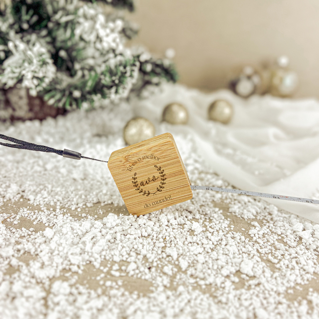 Fabricada em bambu natural, esta fita métrica de 1 metro combina funcionalidade e emoção num só gesto.