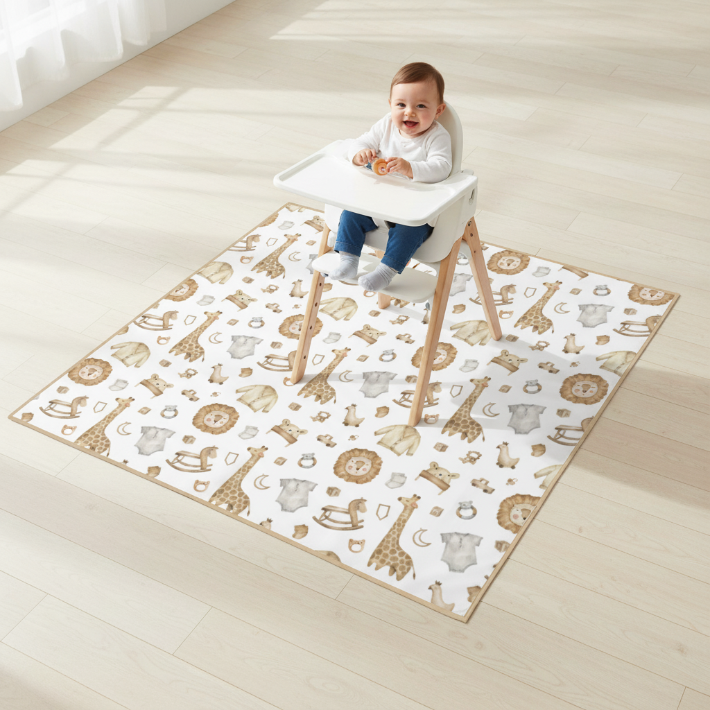 Coloque-o debaixo da cadeira de refeição do bebé e proteja o chão contra comida, migalhas e líquidos. É a solução prática e higiénica para o dia a dia com crianças pequenas — ideal para quem pratica BLW (Baby-Led Weaning).