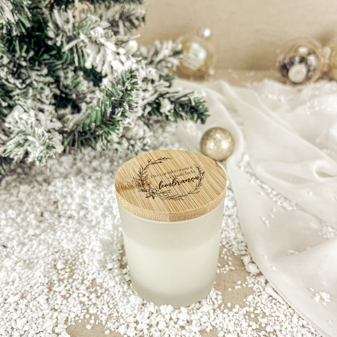 Com aroma suave de baunilha, esta vela em vidro com tampa de bambu natural é uma peça que une simplicidade e emoção.