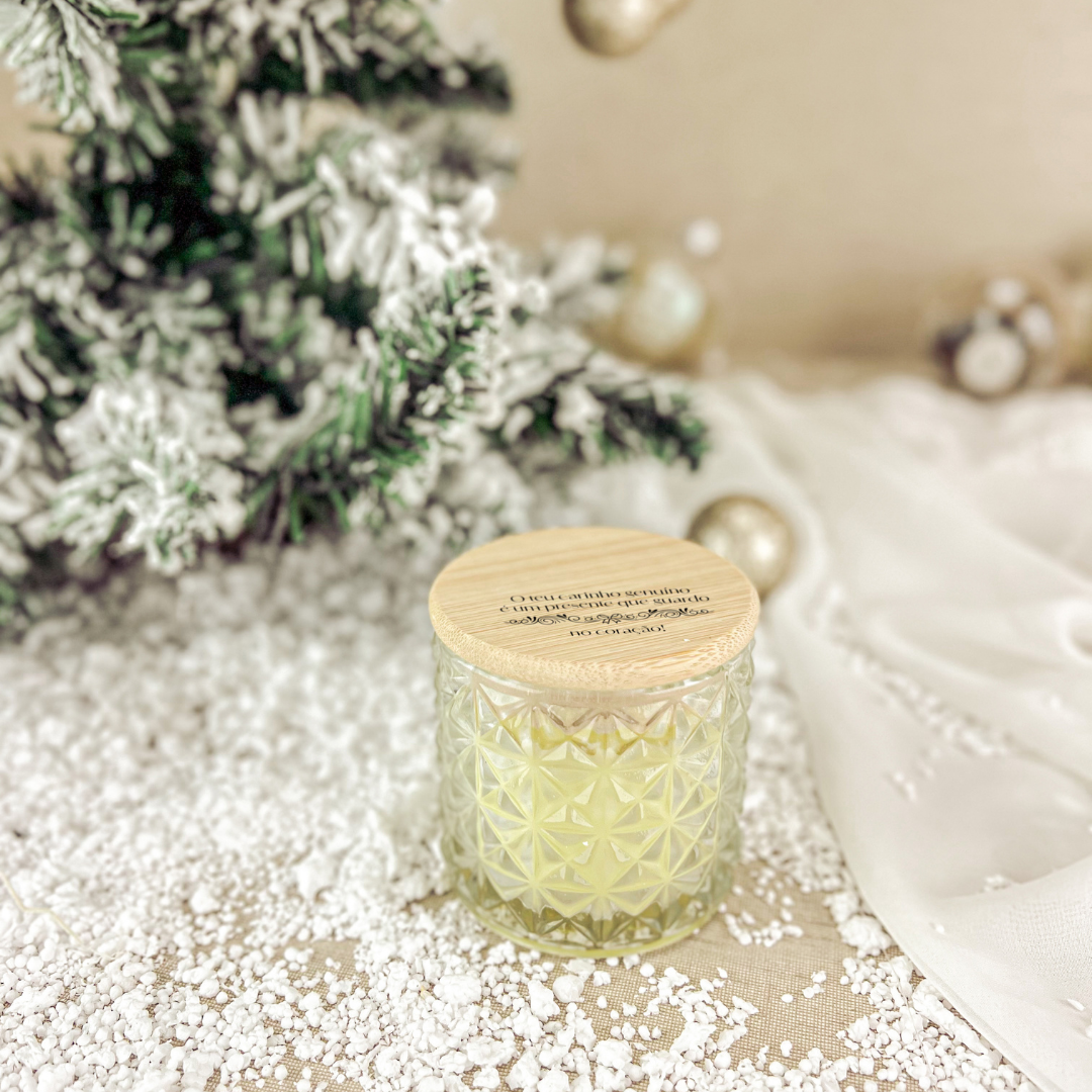 Vela Detalhada em Vidro com Tampa Personalizada