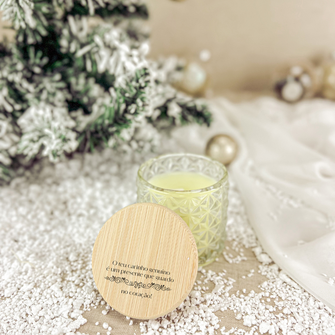 Gravada com a mensagem “O teu carinho genuíno é um presente que guardo no coração”, esta vela é uma lembrança perfeita para o Natal.